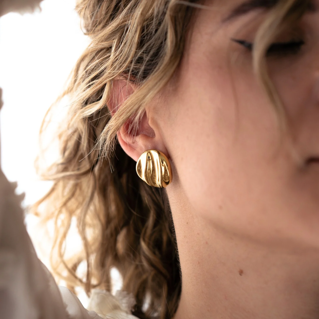 Gli Orecchini Bonnie, con il loro design a bottoni e le delicate venature interne, aggiungono un tocco di unicità. Perfetti da indossare da soli, illuminano il viso e rendono il tuo look iconico e raffinato.