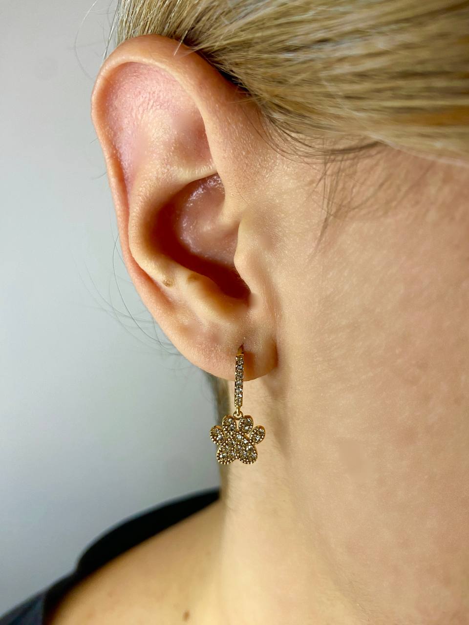 Celebra l'amicizia con il tuo fedele amico a quattro zampe con gli orecchini Maya. Questi hanno un piccolo pendente a forma di zampa tutto zirconato come gli hoop. Parte del ricavato sarà devoluta all'associazione Agriambiente di Ravenna che si occupa di salvare e curare animali randagi.