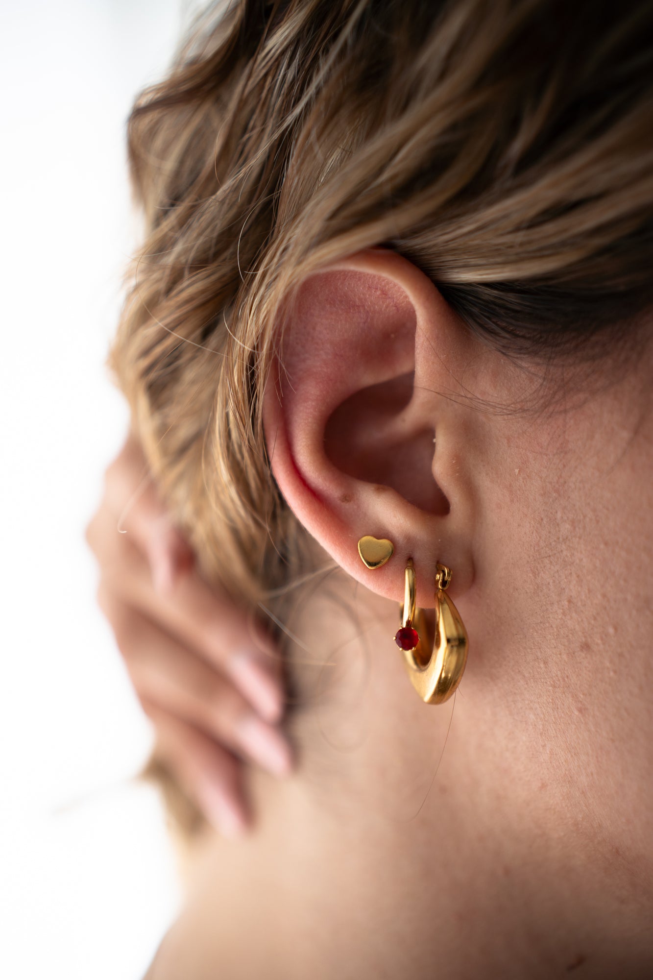 Gli orecchini Red Hoop sono eleganti cerchi in acciaio inossidabile, arricchiti da un pendente a forma di cerchio con zircone rosso. Questi orecchini aggiungono un tocco di colore e raffinatezza al tuo look, perfetti per ogni occasione.
